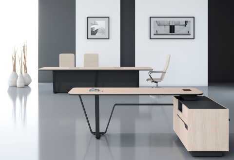 Стол для заседаний СФ-571722.1 Дуб светлый/Белый премиум 2200х1340х754 LINE